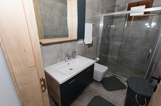 Salon : Oturma grubu, uydu alıcısı, TV, klima, lavabo, ütü, ütü masası, şömine, elektrik süpürgesi.