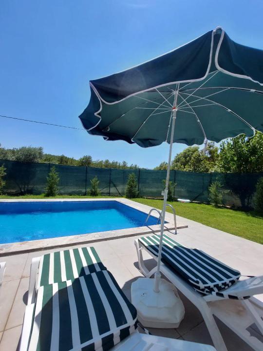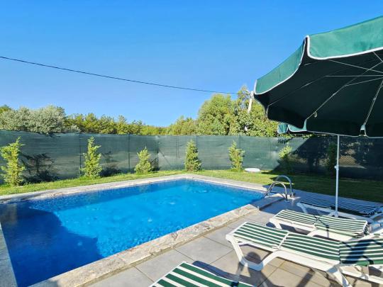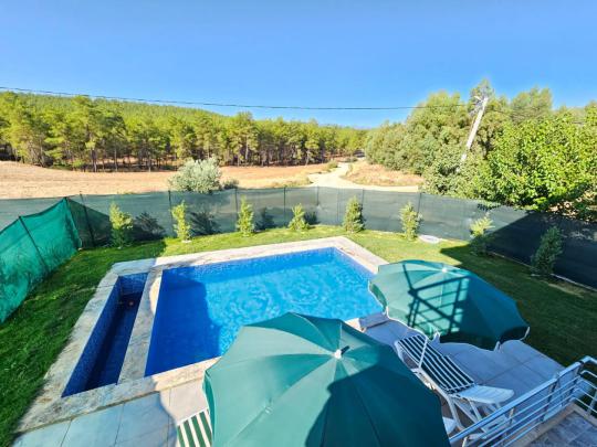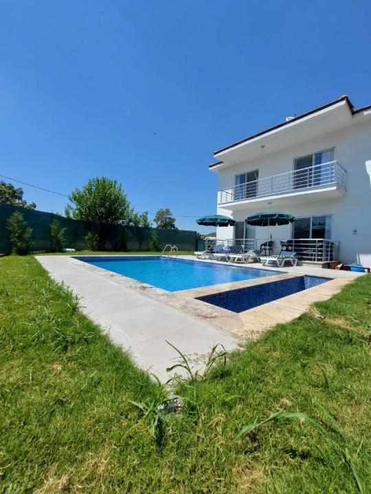 Geniş bir yapıya sahip villa bünyesinde kapasiteye uygun mobilyalar, ihtiyacınız olan tüm araç-gereçleri barındıran Amerikan tarzda, modern mutfak ve 3 adet yatak odası mevcuttur. Konforunuz odaklı tasarlanan villanın 2 yatak odasında klima ve 1 yatak odasında ebeveyn banyosu bulunmaktadır. Diğer banyo ortak kullanımdır. Villamızın 1 yatak odasında ise 2 adet çekyat ile toplamda 6 kişilik konaklama sağlanmaktadır. Villanın geniş, korunaklı havuz alanı ve müstakil bahçesinde yine kapasiteye uygun şezlong ve şemsiye, oturma alanı, salıncak, yemek masası ve barbekü alanı bulunmaktadır.