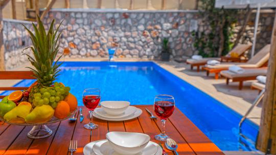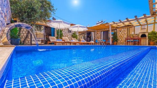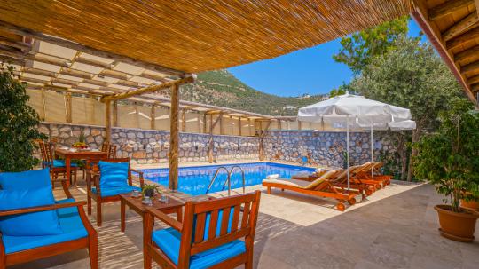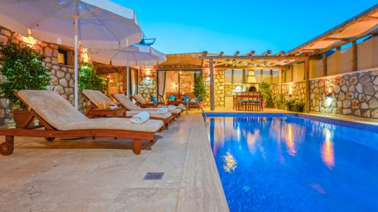 Villamızın özel havuzunda doyasıya yüzebilir ve güneşin keyfini çıkarabilirsiniz. Bahçe alanında kapasiteye uygun şezlong takımı, oturma grubu ve barbekü bulunmaktadır. Havuz terasına açılan konforlu oturma odası ve tam donanımlı açık mutfak, tatilinizi daha da keyifli hale getirecek.