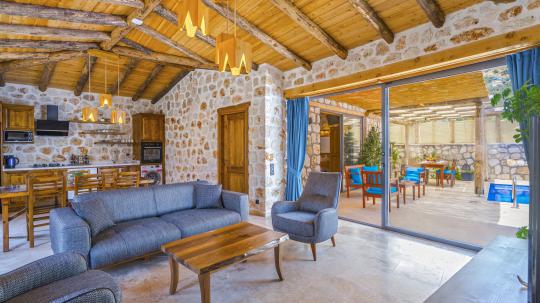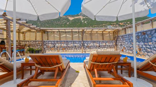 Kalkan Ordu mevkiinde yer alan villa, sizlere huzurlu bir konaklama deneyimi sunuyor. 2 yatak odasıyla 4 kişilik konaklama kapasitesine sahip olan villamız, balayı çiftleri ve çekirdek aileler için ideal bir tercihtir. Ferah iç mekanları ve zarif tasarımı ile göz dolduran villa, doğa manzarasına hakimdir.
