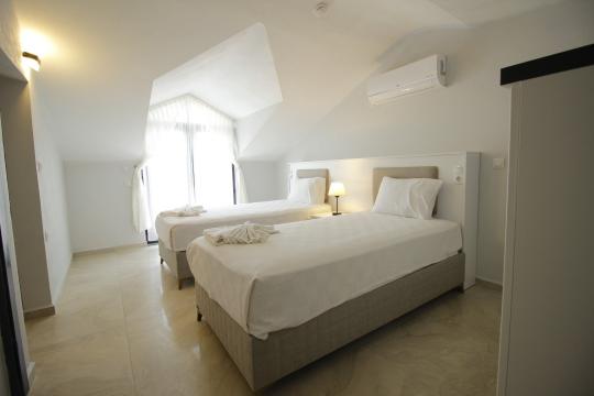 10 kişinin konaklayabileceği evimizin toplam 5 yatak odası ve 1 salonu bulunur. 3 Odamızda çift kişilik yatak, 2 odamızda da 2'şer tane tek kişilik yatak bulunmaktadır.