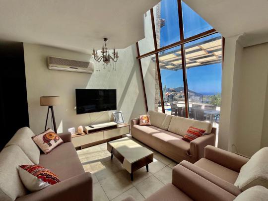 Kalkan Kızıltaş mevkiinde bulunan villa, 4 yatak odasıyla 8 kişilik konaklama kapasitesi sunmaktadır. Geniş havuz ve bahçe alanına sahip olan villa kalabalık aile ve arkadaş grupları için uygun seçenekler arasındadır.