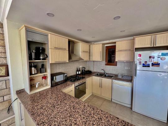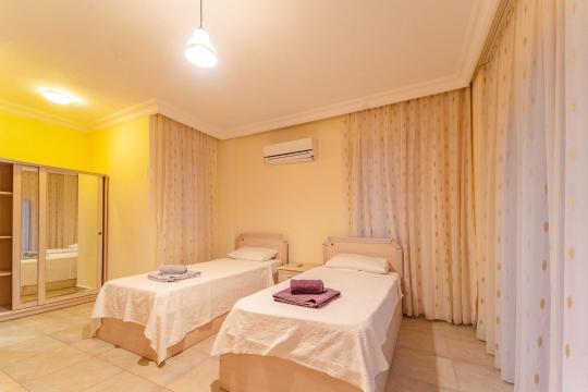 Villanın havuz terasında kapasiteye uygun şezlong takımı, barbekü alanı bulunmaktadır. İhtiyaçlarınıza karşılık verecek konforlu oturma odası, tam donanımlı açık mutfağı bulunan villanın, 2 yatak odasında çift kişilik yatak ve ebeveyn banyosu, diğer iki yatak odasında da 4 tek kişilik yatak ve ebeveyn banyosu bulunmaktadır.