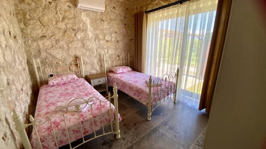 Villamız toplamda 6 kişinin rahatlıkla konaklayabileceği ve sizlerin rahat etmesi için her şeyin en ince ayrıntısına kadar düşünüldüğü bir villadır. Villamızda birinci yatak odası içerisinde bir adet çift kişilik yatak, ebeveyn banyosu ve klima yer almaktadır. İkinci yatak odasında ise bir adet çift kişilik yatak ve klima yer almaktadır. Üçüncü yatak odasında ise iki adet tek kişilik yatak ve klima bulunmaktadır. Ortak alanda ise açık mutfak - salon, WC , klima ve TV mevcuttur.