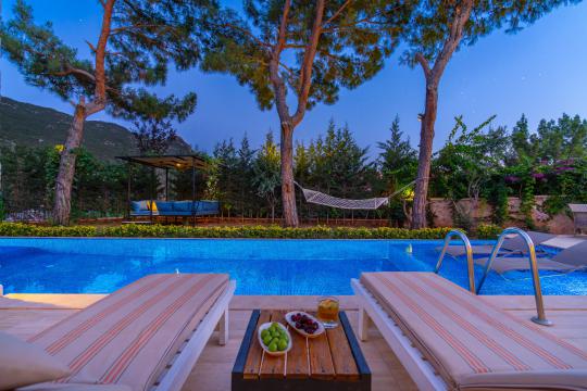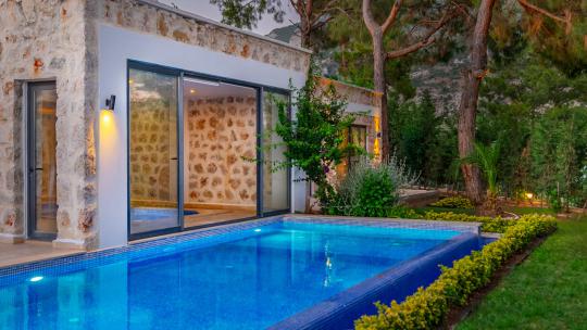 Villa Pomelo 1; Kaş Kalkan İslamlar mevkiisinde konumlanmaktadır. Deniz Manzaralı ve Yeşilliklerle kaplı muhteşem doğa manzarasına hakim ultra lüks kiralık villalarımız arasında yer almaktadır. Taş yapı mimarisi ile göz dolduran modern ve konforlu villamız da 2 adet yatak odası bulunmakta olup, 4 kişiye konaklama imkanı sağlamaktadır. Ayrıca kış aylarında tatil yapmak isteyen misafirlerimiz için villamızın içerisinde kapalı ısıtmalı havuz bulunmaktadır. Ferah bir havuz terasına ve geniş bir bahçeye sahip villamızın havuz terası korunaklı hale getirilmiştir. Balayı çiftlerimiz ve muhafazakar ailelerimiz gönül rahatlığı ile tercih edebilirler. Villamızın özel yüzme havuzunun yanında sığ havuz yer almaktadır. Bahçesinde uzun uzun keyif yapabileceğiniz hamak ve köşk bulunmaktadır. Sevdiklerinizle birlikte huzur dolu bir yazlık villada tatil için Villa Pomelo 1, sizler için doğru bir tercih olacaktır.