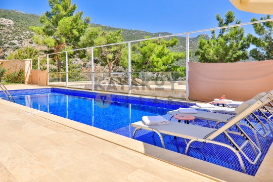 Villa Pomelo 5, Antalya – Kaş / Kalkan İslamlar bölgesinde konumlanan özel havuzlu kiralık villalardan biridir ve özellikle geniş aileler ile arkadaş grupları için ferah ve konforlu bir tatil seçeneği sunar. Bu villa 4 yatak odası ve 4 banyosu ile toplamda 8 kişiye kadar konaklama kapasitesi sağlar ve taş mimarisiyle çevresiyle uyumlu bir yaşam alanı sunar. Villa Pomelo 5, panoramik doğa manzarası ile huzurlu bir atmosfer yaratır ve tatil boyunca dinlendirici bir ortam sağlar.