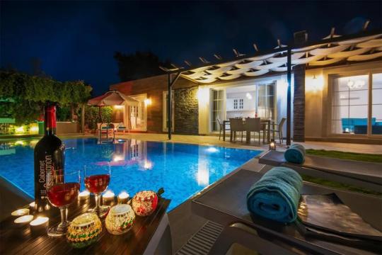 Ekstralar : Villa Erik korunaklı olup havuzu dışarıdan görünmemektedir. Villa içerisinde kablosuz internet bulunmaktadır. Villa temiz bir şekilde teslim edilmektedir. Bütün odalarda klima bulunmaktadır.