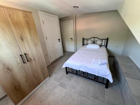 4.Yatak Odası : Tek kişilik yatak, komodin, elbise dolabı, klima, banyo ve WC bulunmaktadır.