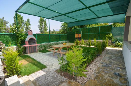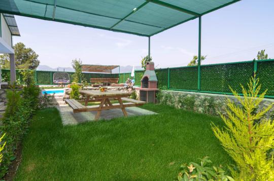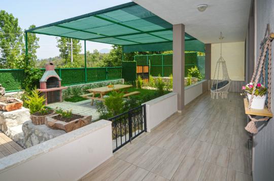 Fethiye / Saklıkent’de bulunan Villa Rame'nin benzersiz özelliklerinden biri, ferah bir verandaya sahip olmasıdır. Bu güzel veranda, sizlere özgürce vakit geçirebileceğiniz geniş bir alan sunar. Günün yorgunluğunu atabileceğiniz, açık havada keyifli bir akşam yemeği yiyebileceğiniz veya sadece serin bir içecek eşliğinde dinlenebileceğiniz bir ortam sağlar.