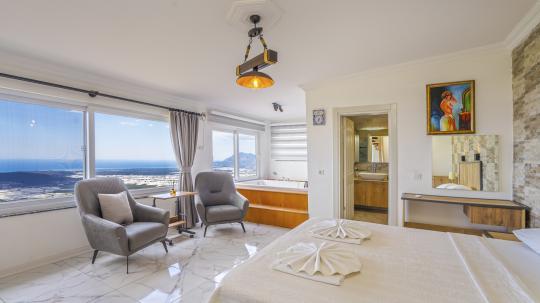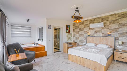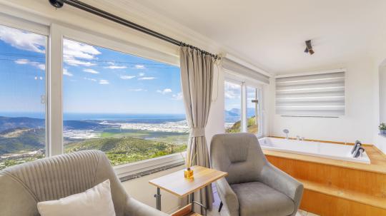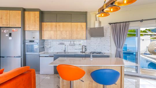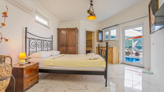 Villanın geniş terasında, masmavi deniz manzarasına karşı kahvenizi yudumlayabilir, özel jakuzinizde günün yorgunluğunu atabilirsiniz. Tam donanımlı mutfağı, konforlu yatak odaları ve şık oturma alanı ile ev konforunu aratmayan Villa Ramos, sessizlik ve huzur içinde unutulmaz bir tatil sunuyor. Kalkan merkeze yakın konumu sayesinde, restoranlara, plajlara ve bölgenin doğal güzelliklerine kolayca ulaşabilirsiniz. Villa Ramos, romantik ve özel bir tatil arayan misafirleri bekliyor! 🌿💫🏡