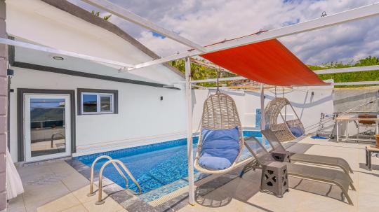 Villa Ramos, Kalkan’ın doğayla iç içe Üzümlü Mevkii'nde yer alan, 4 kişi kapasiteli, jakuzili ve deniz manzaralı özel bir tatil villasıdır. Muhafazakar konsepte sahip olan bu villa, korunaklı özel havuzu ile gözlerden uzak, huzurlu bir konaklama deneyimi sunar. Doğanın kalbinde yer alan bu şık ve konforlu villa, özellikle balayı çiftleri ve küçük aileler için mükemmel bir tatil fırsatı sunmaktadır. Modern ve zarif iç tasarımıyla dikkat çeken Villa Ramos, misafirlerine lüks ve rahatlığı bir arada yaşatır.