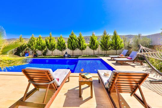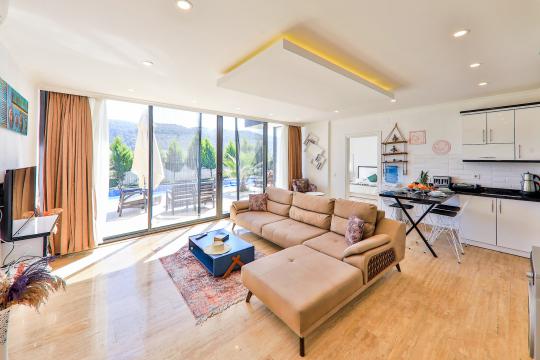 Kalkan Sarıbelen köyünde bulunan bu lüks tatil villamız, 2 yatak odası ile 4 kişilik kapasiteye sahiptir.