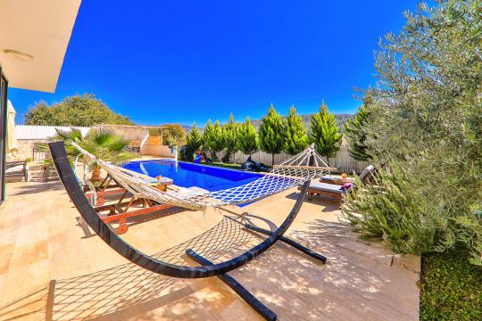 Kalkan şehir merkezine yaklaşık 15 km'de bulunan Sarıbelen köyünde, doğa içinde sessiz sakin bir konuda olan bu villa, şehrin stresinde uzak huzurlu bir tatil yapmak isteyen konuklarımız için ideal bir tatil mekanıdır. Son derece geniş ve ferah alanlara sahip villamızda özel yüzme havuzu, kapalı otopark (bir araçlık) ve internet bağlantısı bulunmaktadır. Villamız içinde ihtiyacınız olan tüm mobilya mutfak araç gereçleri ütü saç kurutma makinesine kadar mevcuttur.