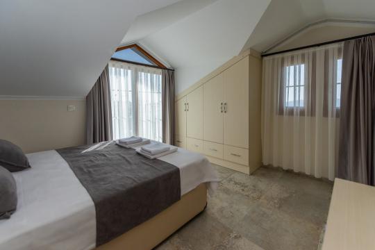1.Yatak Odası: 1 adet Çift kişilik yatak, Elbise Dolabı,Komodin, Makyaj Masası, Klima,Jakuzi, banyo/WC