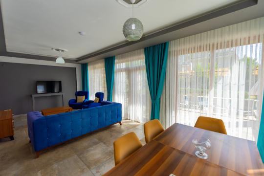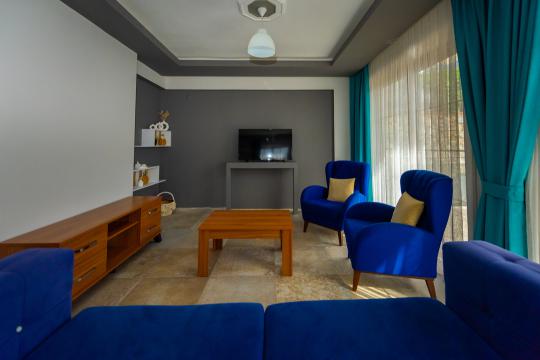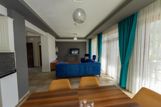 Salon : Oturma grubu ,klima ,LCD TV, uydu alıcısı, kablosuz internet,yemek masası ve sandalyeler yer almaktadır.
