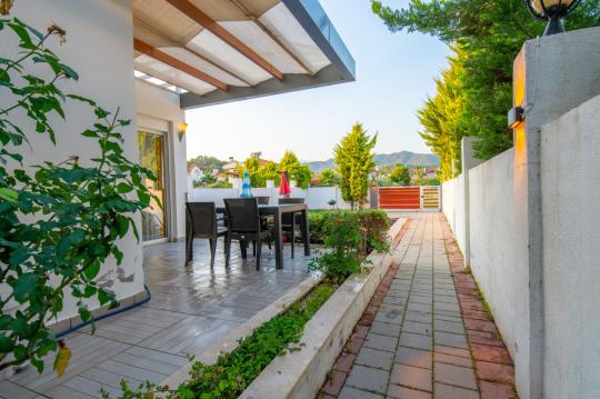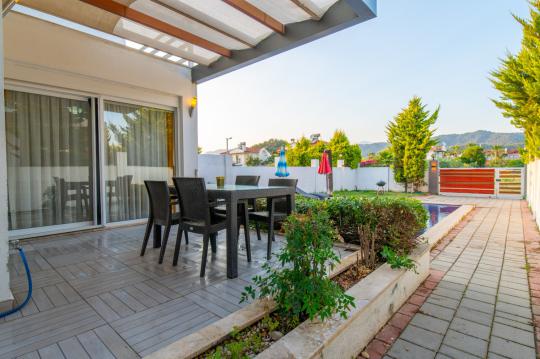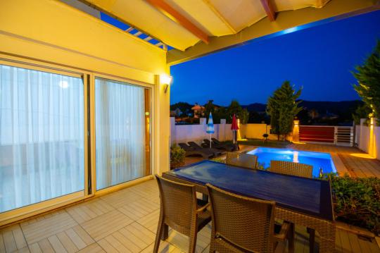 Fethiye / Çiftlik’de bulunan Villa Ronay 5'in benzersiz özelliklerinden biri, ferah bir verandaya sahip olmasıdır. Bu güzel veranda, sizlere özgürce vakit geçirebileceğiniz geniş bir alan sunar. Günün yorgunluğunu atabileceğiniz, açık havada keyifli bir akşam yemeği yiyebileceğiniz veya sadece serin bir içecek eşliğinde dinlenebileceğiniz bir ortam sağlar.
