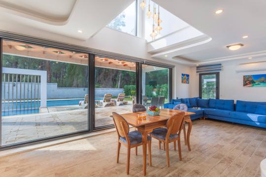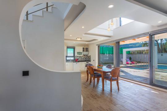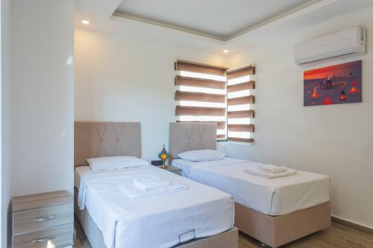 Merkezi bir depolama alanı bünyesinde villa kapasitesine uygun mobilyalar, ihtiyacınız olan tüm araç-gereçleri barındıran Amerikan hizmetleri, modern mutfak ve tüm detaylar ayrı ayrı düşünülerek tasarlanmıştır.Konforunuz odaklı tasarlanan villanın tüm yatakların klima ve özel kullanım banyo/wc'si bulunmaktadır. Villanın geniş havuz terası ve müstakil aralığı yine kapasiteye uygun program ve şemsiye, oturma alanı, yemek masası ve banyo alanı mevcuttur.