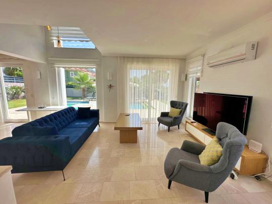 Merkezi bir konumda yer alan villa bünyesinde kapasiteye uygun mobilyalar, ihtiyacınız olan tüm araç-gereçleri barındıran Amerikan tarzda,modern mutfak ve tüm detaylar ayrı ayrı düşünülerek dizayn edilmiştir.Konforunuz odaklı tasarlanan villanın tüm yatak odalarında klima ve özel kullanım banyo/wc bulunmaktadır. Villanın geniş havuz terası ve müstakil bahçesinde yine kapasiteye uygun şezlong ve şemsiye, oturma alanı, yemek masası ve barbekü alanı mevcuttur.