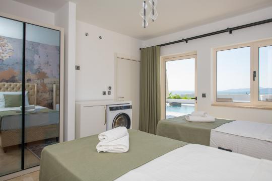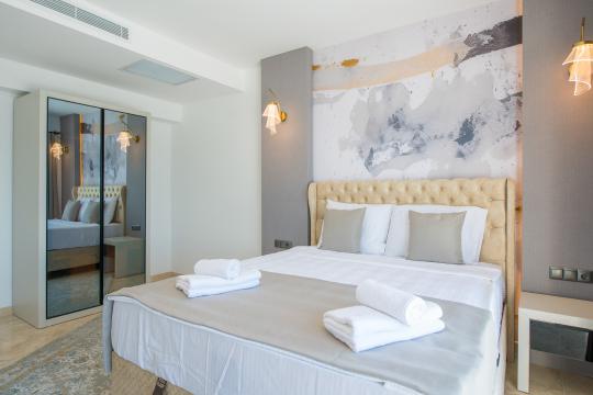 Ultra lüks 5+1 villamız, modern mimari ve zarafetin buluştuğu bir tasarımla hayat buluyor. En yüksek kalite standartlarında inşa edilmiş bu özel yapı, Bodrum'un en güzel koylarından birinin tepesinde gururla yükseliyor. Muazzam deniz manzarasının eşsiz güzelliği, villamızın her odasından görülebiliyor ve ruhunuza dinginlik katıyor. Birinci sınıf malzemelerle döşenmiş geniş iç mekanları, yaşam alanlarınızı zenginleştirirken, ferah terasları ve özel havuzuyla dışarıdaki doğal güzelliklerle iç içe bir yaşam sunuyor. Villamızın havuzunda yüzerken, masmavi Ege Denizi'nin ve muhteşem Bodrum manzarasının keyfini çıkaracaksınız. Akşamüstleri gün batımını izlerken, kendinizi adeta sonsuz bir huzurun kollarında hissedeceksiniz. Villamızın iç tasarımı, modern ve sofistike bir tarzda özenle dekore edilmiştir. Büyük cam pencereler sayesinde doğal ışık, her anınızı aydınlatırken, açık plan düzeni ise ferah bir yaşam alanı sunuyor. Her ayrıntının titizlikle düşünüldüğü bu villada, kalite ve rahatlığın tadını çıkaracaksınız. Bodrum'un eşsiz doğasının tadını çıkarırken, sahile yakın konumuyla da deniz ve kumun keyfini doyasıya yaşayacaksınız. Hem huzur dolu bir yaşam hem de sosyal yaşamın merkezinde olma avantajını bir arada yaşayacağınız bu özel villamız, hayallerinizdeki tatili gerçeğe dönüştürecek.Unutulmaz anlar yaşamak, lüks ve konforun zirvesinde bir yaşam sürmek için sizleri Bodrum'daki bu rüya villamıza davet ediyoruz. Burada, ailenizle ve sevdiklerinizle geçireceğiniz her an, ömür boyu hatırlayacağınız anılara dönüşecek.