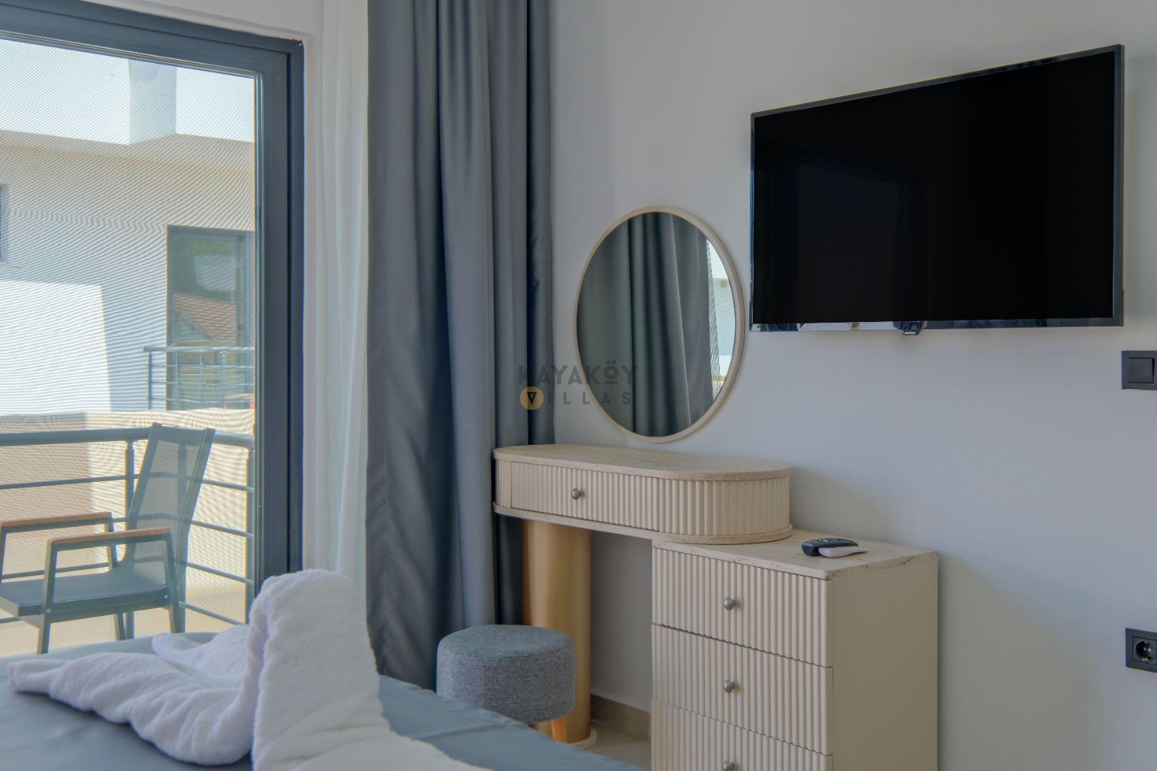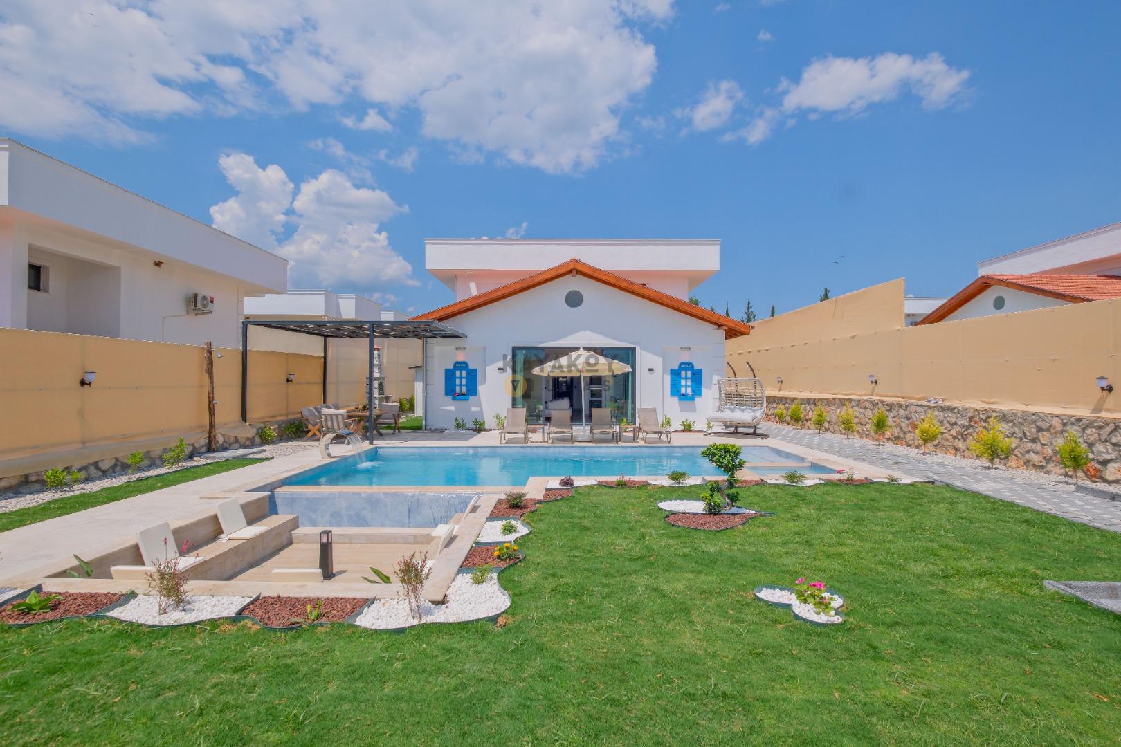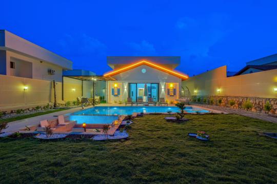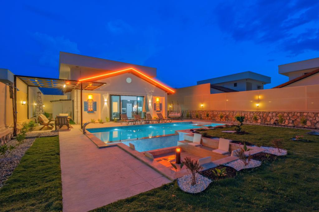 Not: Doğa ile iç içe konuma sahip olan tüm villalarımızda düzenli olarak ilaçlama yapılır. Buna rağmen çevrede haşere vb. bulunma ihtimali vardır. Havuzu korunaklı villalarımızda kesinlikle %100 görünmeme garantisi vermemekteyiz. Bu villalarımızda her zaman % 5 sakınma payı mevcuttur. Sitemizde bulunan villa fotoğraflarının, görüntüyü ekrana sığdırmak için ’Geniş Açılı Lens’ ile çekilmektedir. Bu sebeple resimlerdeki objeler, gerçek boyutlarından daha büyük veya küçük görünebilmekte.