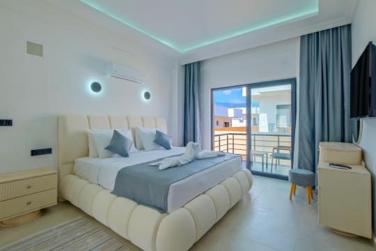 1.Yatak odası: 1 adet Çift kişilik yatak, klima, ebeveyn banyo, komodin, park yatak, elbise dolabı ve balkon bulunmaktadır.