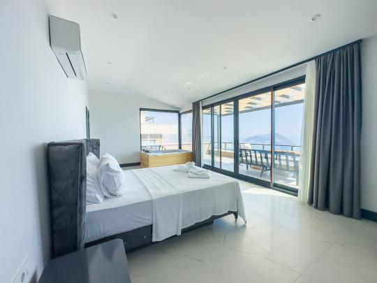 Antalya’nın Kalkan beldesinde muhteşem deniz ve doğa manzarasına hâkim bir konumda yer alan Villa Safir (Kalkan), geniş aileler ve arkadaş grupları için tasarlanmış lüks özel havuzlu kiralık villa seçeneklerinden biridir. Villa, 5 yatak odası ve 5 banyosu ile toplam 10 kişiye kadar konaklama imkânı sağlarken, ferah yaşam alanları ve modern dekorasyonuyla tatilinizi konforlu ve keyifli hâle getirir. İç mekân, geniş salon, modern döşenmiş yatak odaları ve yüksek kaliteli mobilyalarla donatılmış olup her odada klima, elbise dolabı ve özel banyo gibi konfor unsurları bulunur; bazı suit odalar panoramik deniz manzaralı balkonlara açılır. Jakuzili suit odalar, sauna ve hamam gibi ekstra ayrıcalıklar da tatilinize lüks bir dokunuş ekler.