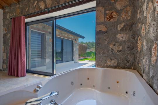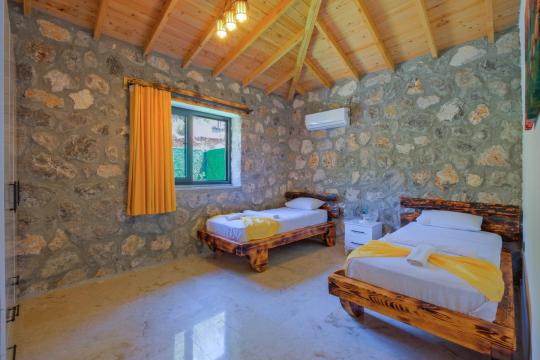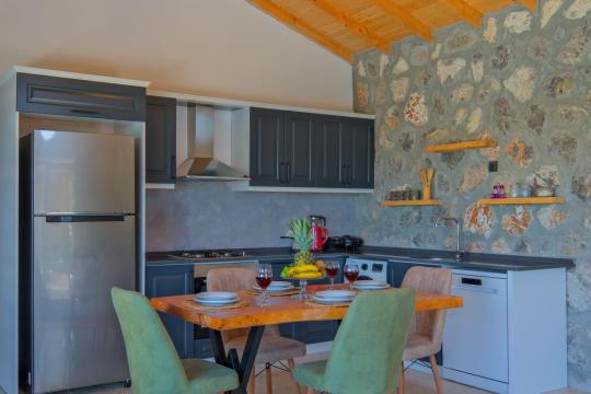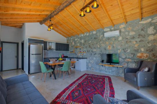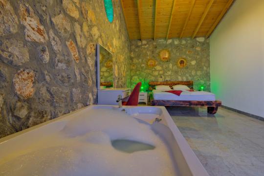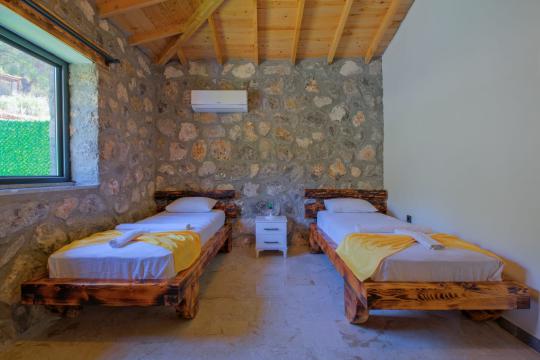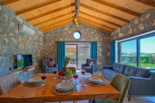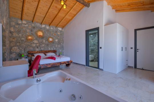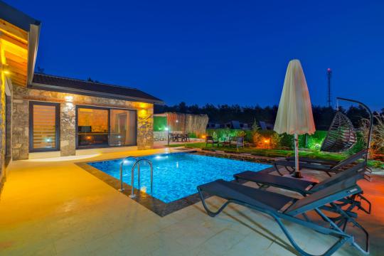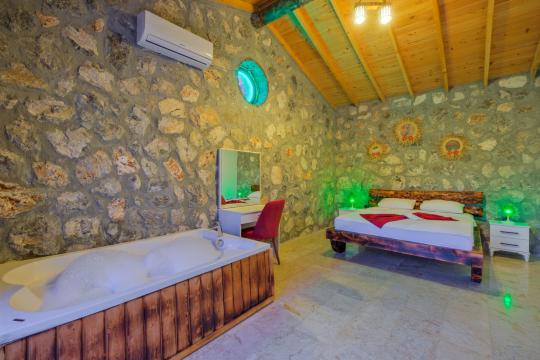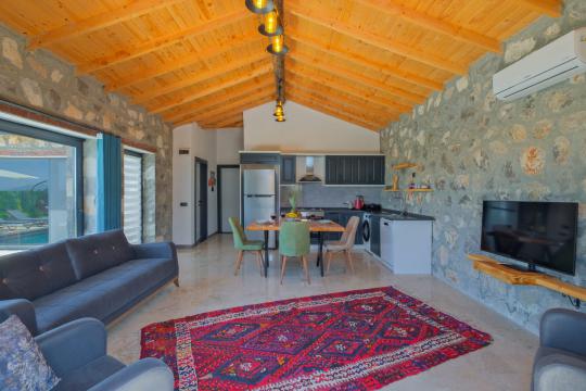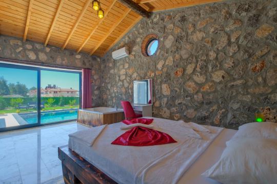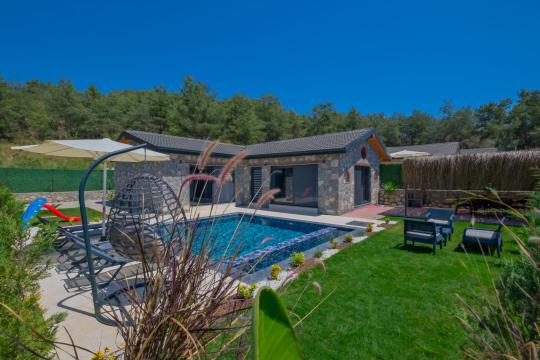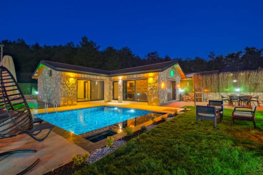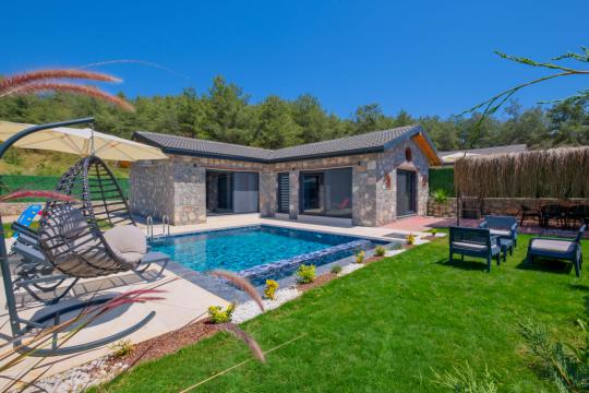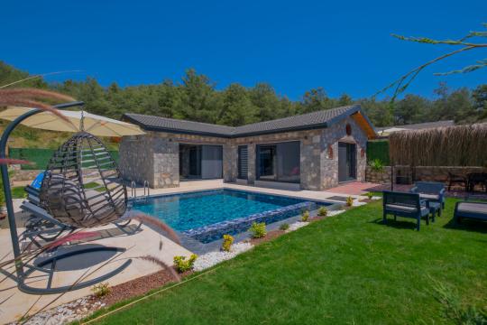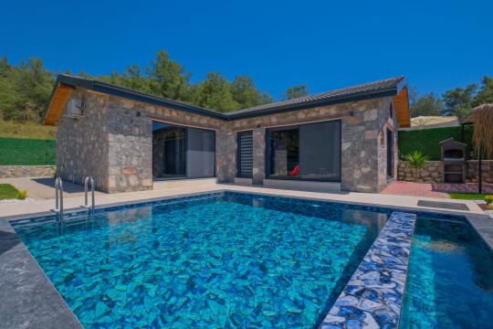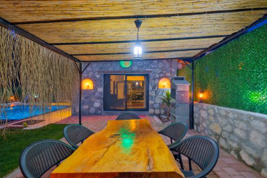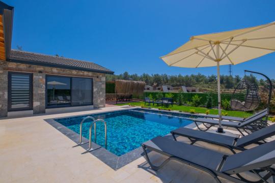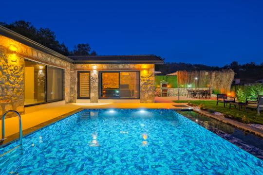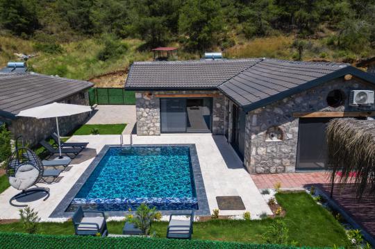 Villamız Fethiye’nin merkezi ve doğa içerisinde ki konumuyla bilinen Karagedik Mevkiinde yer almaktadır. Çalış plajı , Akmaz Koyu gibi plajlara yakınlığı ve evinize çekildiğinizde size yaşattığı sonsuz huzurla konaklayanlarına sıradışı bir deneyimi yaşatmaktadır.Villa Safran 3, 2 yatak odalı 4 kişilik kapasiteye sahip villa seçeneklerimiz arasında yer almaktadır. Villanın birer banyosu ve jakuzisi mevcut. Açık mutfağı ve kendine ait bahçesinde bir havuzu var. Mutfağında bulaşık makinesi, buzdolabı, ankastre fırın, tost makinesi ve mutfakta ihtiyaç olan hemen hemen bütün gereçler bulunuyor. Barbekü, masa, sandalyeler, şezlonglar ve şemsiyeler bahçe keyfini sınırsız yaşamanıza imkan tanıyor. Salonunda oturma grubu, televizyon, eşyalar bulunurken, tüm odalar için ayrı klima imkanı var.