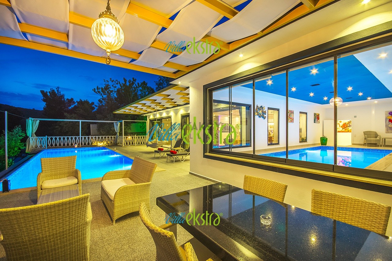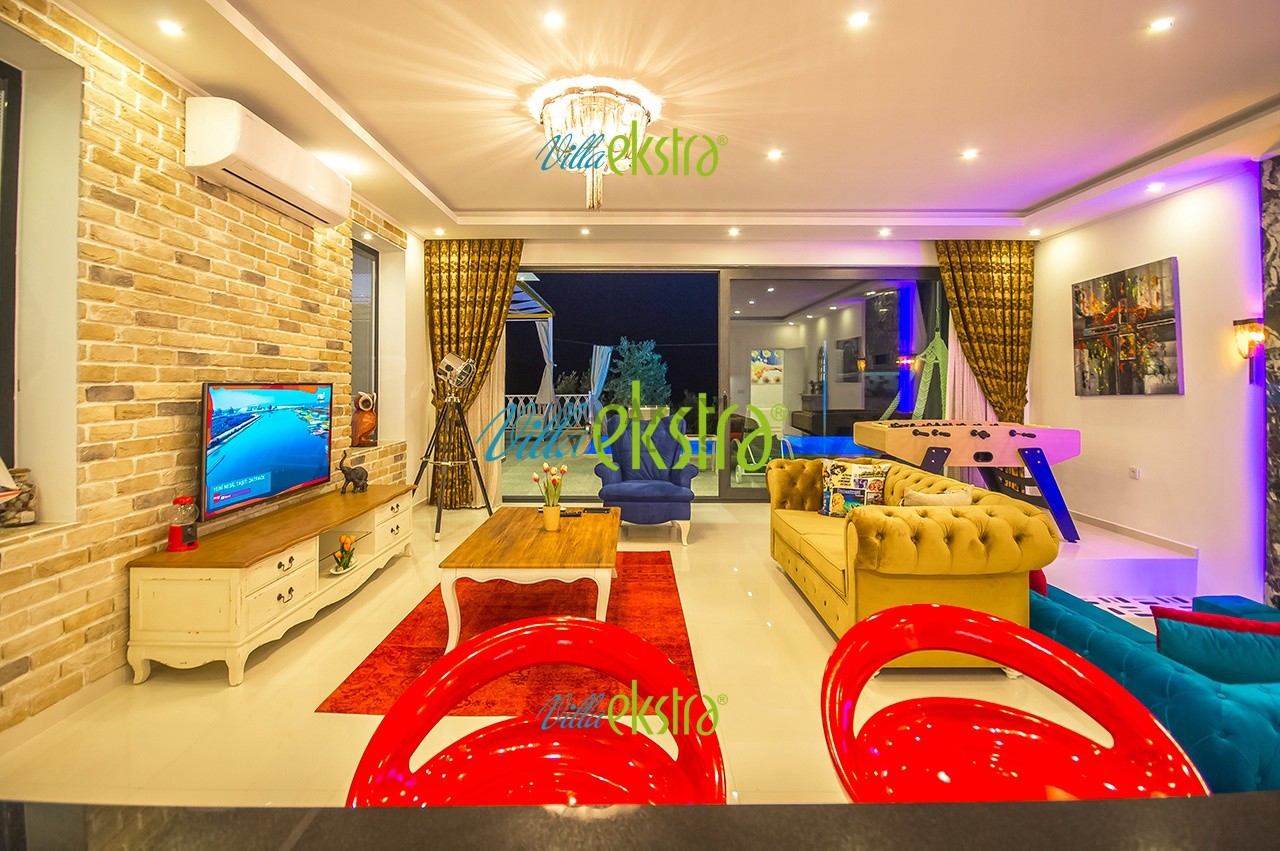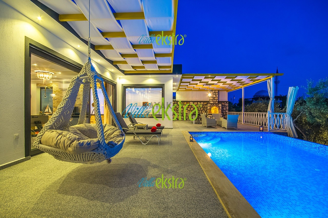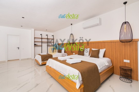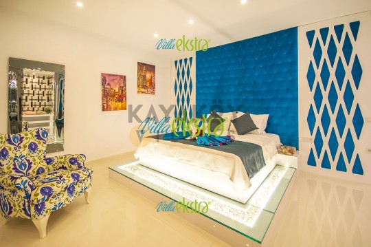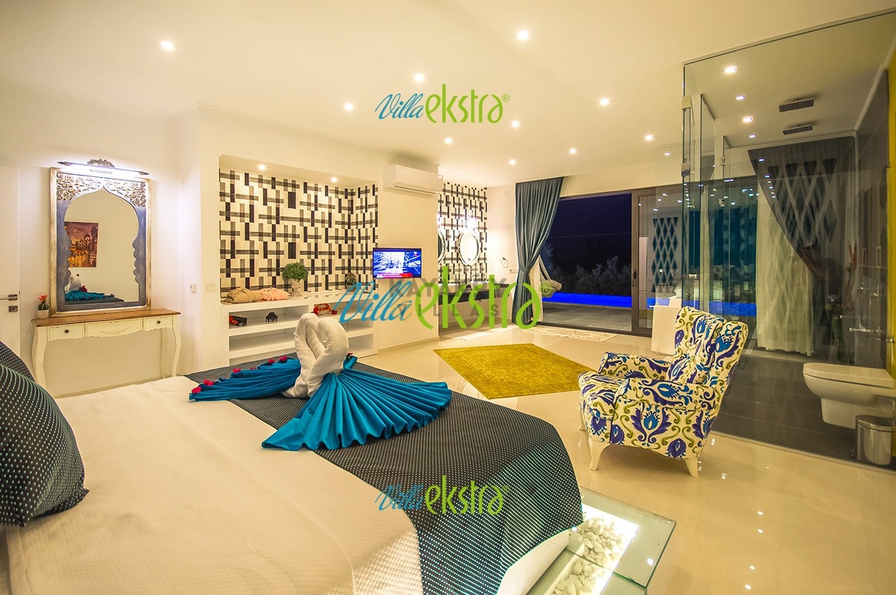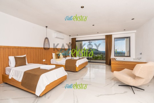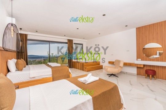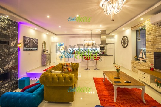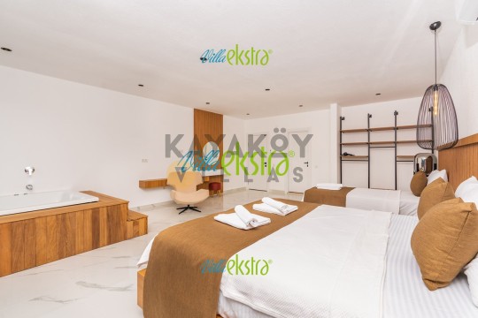 İç mekân tasarımında modern detaylar ön plana çıkarılmış olup tam donanımlı Amerikan mutfak, ferah oturma alanı ve konforlu yatak odaları yer almaktadır. Jakuzili yatak odası, tatilinize ekstra konfor ve rahatlama katarken şık ve fonksiyonel tasarım anlayışı sayesinde Villa Safran, Kalkan kiralık villa seçenekleri arasında öne çıkan alternatiflerden biri hâline gelir.