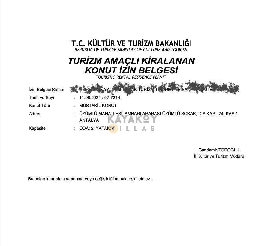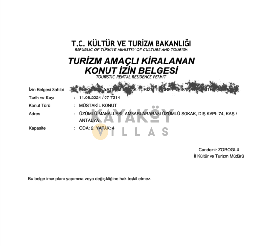 Konum Kalkan Kiralık Villa / Üzümlü -