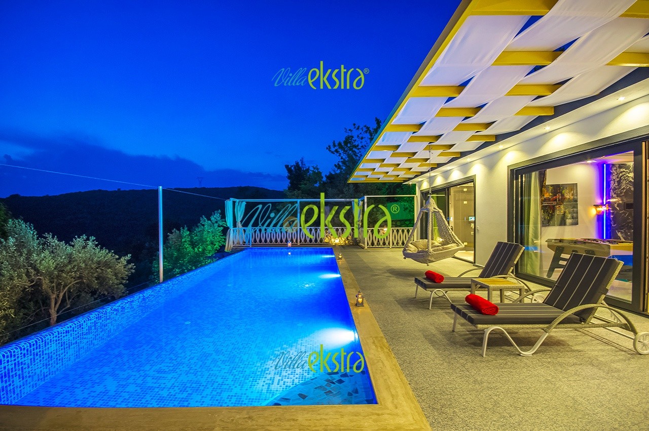 NOT : Villamızın kapalı havuzu ısıtmalıdır. Ortalama su sıcaklığı 27-28 derece civarındadır. Havuz ısıtma hizmetimiz için ekstra ücret talep edilmemektedir. Havuz ısıtma talep edilmesi durumunda suyun yeterli ısıya ulaşabilmesi için rezervasyon esnasında veya eve giriş yapmadan en geç 3 gün öncesine kadar bildirilmelidir.