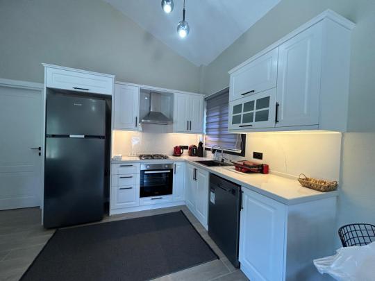 Mutfak : Havuz katında bulunan Amerikan mutfakta buzdolabı, bulaşık makinesi, çamaşır makinesi, yemek masası, fırın, 4’lü ocak, tost makinesi, kettle, yemek takımı, tava, tencereler ve çatal bıçak takımı bulunmaktadır.
