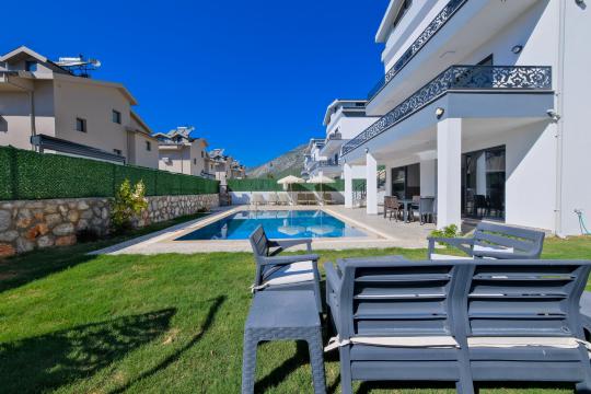 Fethiye Ölüdeniz mevkiindeki büyüleyici villamızda, lüks ve konforun mükemmel birleşimini keşfedin. Villa Sancak 1; 4 yatak odası, ebeveyn yatak odalarında jakuzi ve modern bir salon ile donatılmış olan bu villamız, 8 kişiye kadar konaklama imkanı sunar. Kendinizi özel hissedeceğiniz hamam, sauna ve kapalı havuz ile kendi kişisel spa deneyiminizi yaşayabilirsiniz. Açık hava severler için, villamızın bahçesinde keyifli bir oturma alanı ve serinlemek için geniş bir havuz bulunmaktadır. Villamız, Ölüdeniz’in muhteşem çam ormanlarıyla çevrili doğasının içinde, huzurlu bir kaçamak yapmak isteyen aileler ve arkadaş grupları için idealdir. Modern ihtiyaçlarınızı karşılayacak şekilde tam donanımlı olan villamızda, tatiliniz boyunca rahatınızdan ödün vermenize gerek kalmaz. Burada geçireceğiniz zaman, sizi günlük hayatın stresinden uzaklaştırıp yenilenmiş hissetmenizi sağlayacak.
