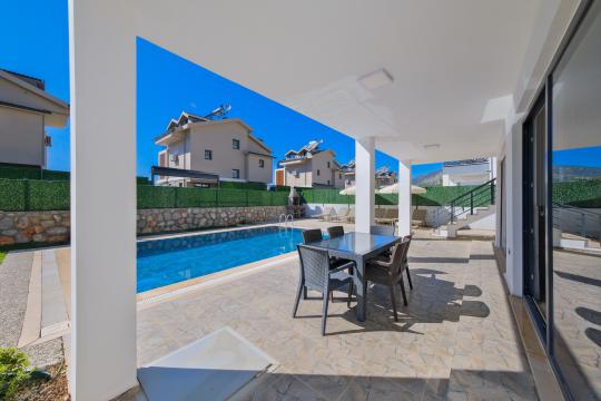 Salon : Salonumuzda oturma grubu, klima, LCD TV, sehpa, uydu alıcı bulunmaktadır. Havuz terasına çıkış yapılabilmektedir.