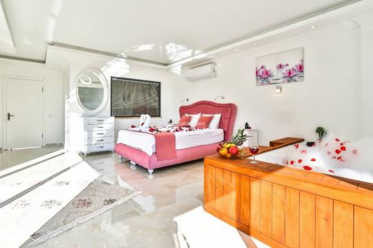 1.Yatak odası 1 çift kişilik yatak + elbise dolabı + komidin + makyaj masası + ebeveyn banyo + Jakuzi