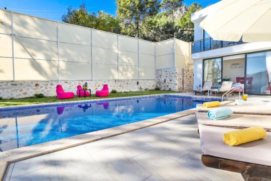 Kaş Kalkan'ın şirin tatil beldesi İslamlar köyünde yer alan 3 yatak odalı 6 kişilik muhafazakar özel havuzlu jakuzili tatil villasıdır. Doğa ve deniz manzarasına sahip olan Villa Şans, özel bahçe alanı dışarıdan gözükmeyen korunaklı yüzme havuzu ile muhafazakar aileler ve balayı tatilcileri için oldukça özel bir tatil fırsatı sunmaktadır. Villamızın hemen yanında aynı tarz ve konseptte yer alan Villa Hürrem yer almaktadır. Bu 2 villamız aynı anda kiralama imkanı ile toplamda 12 kişi konaklama kapasitesine sahiptir.