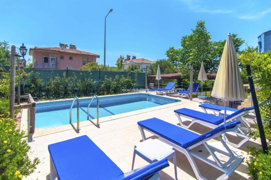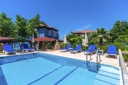 Villa Sarp; Fethiye Ölüdeniz Ovacık bölgesinde yer alan 4 yatak odalı 8 kişi kapasiteli geniş bahçeli ve özel havuzlu kiralık tatil villasıdır. Merkezi bir lokasyona sahip olan Villa Sarp; market,restoran ve hisarönü merkezine yürüme mesafesindedir. Villamız açık plan mutfak salon dört yatak odası ve dört banyodan oluşmaktadır. Misafirlerimizin tüm ihtiyaçları göz önünde bulundurularak eşyalandırılıp dizayn edilmiş olan Villa Sarp geniş bahçe alanında hoş vakit geçirebilir havuzun keyfini çıkarabilirsiniz.