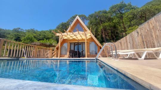 -Fethiye Faralyada yer alan Villa Sedir 1 doğanın içerisende tamamı sedir ağaçları kullanılarak tasarlanmış bir villa olup, Çukuryurt plajına 5 dk yürüme mesafasinde konumlanmıştır. Kumsalda kendine özgü şelalesi bulunan çevre dostu bir villadır.