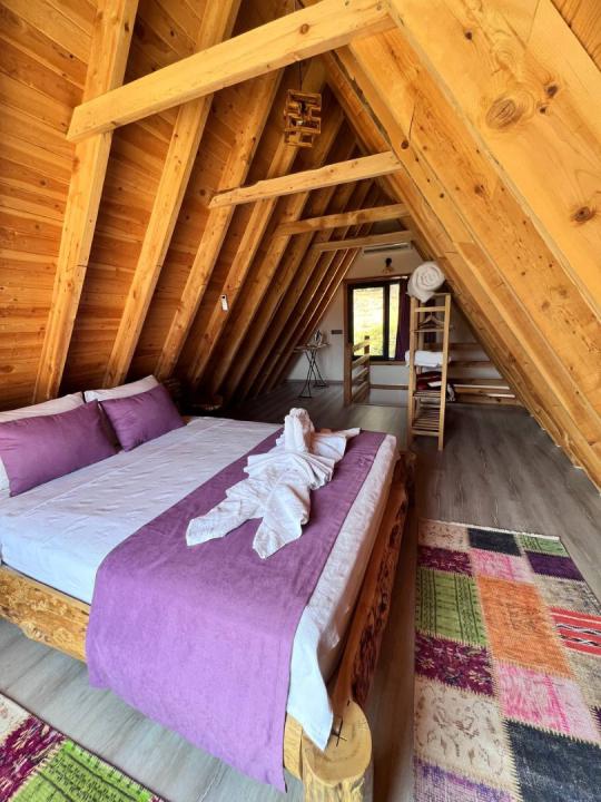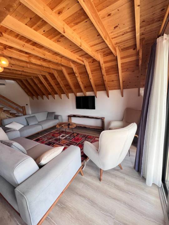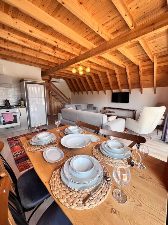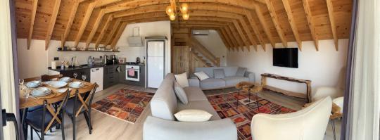 -1.katta açık mutfak ve salon şeklide olup, 2.katta 1 adet çift kişilik yatak, 1.katta açılır kapanır kanepe sayesinde 4 kişilik konaklama imkanı sunmaktadır.