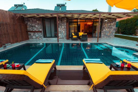 Villa Selinay, Fethiye Kayaköy mevkiinde yer alan özel havuzlu ve havuzu tam korunaklı villamızdır. Havuzu ve bahçesi dışarıya karşı tam korunaklı olmasından dolayı, muhafazakar aileler ve balayı misafirleri için muhteşem bir tatil imkanı sağlamaktadır. Yemyeşil ve bakımlı bahçesi ile birlikte misafirlerimizin rahat bir konaklama geçirmesi için tüm detaylar en ince ayrıntısına kadar düşünülmüştür.