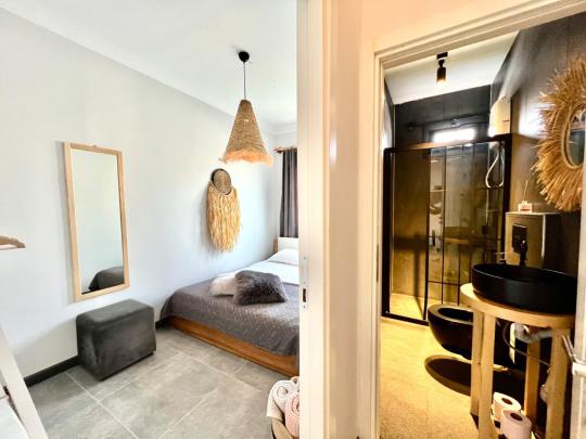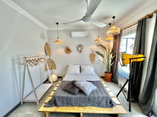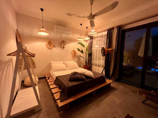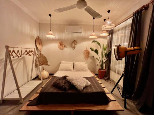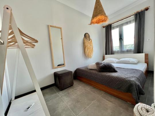 1. Yatak Odası : Çift kişilik yatak, klima, tavan pervanesi, elbise askılığı, banyo & wc bulunmaktadır.