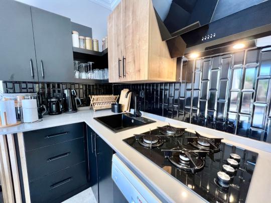 Mutfak : Amerikan mutfak içerisinde buzdolabı, bulaşık makinesi, fırın, mikrodalga fırın, 4lü ocak, çaycı, kahve makinesi, yemek masası ve sandalyeler, çatal, kaşık, bıçak, tavalar vb. yer almaktadır.