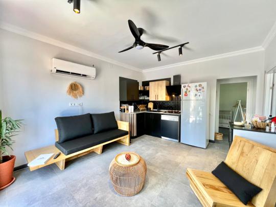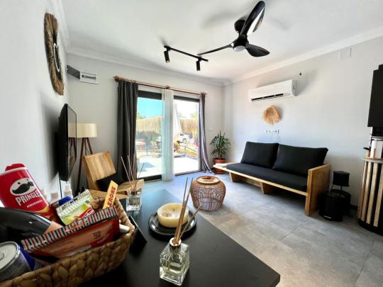Salon : Salon içerisinde oturma grubu, TV, klima, tavan pervanesi ve bahçe terasına çıkış bulunmaktadır.