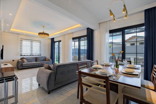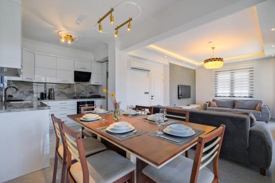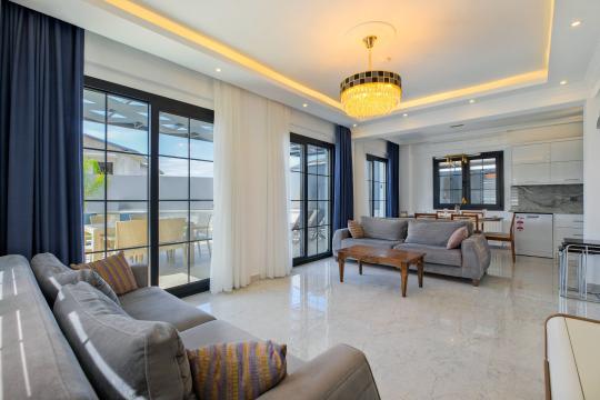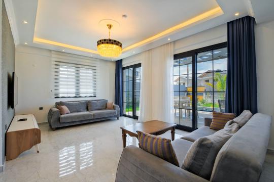 Salon : Lüks ve konforlu salon içerisinde oturma grubu, LCD TV, klima ve havuz terasına direkt çıkış yer almaktadır.