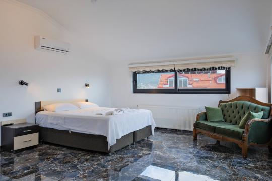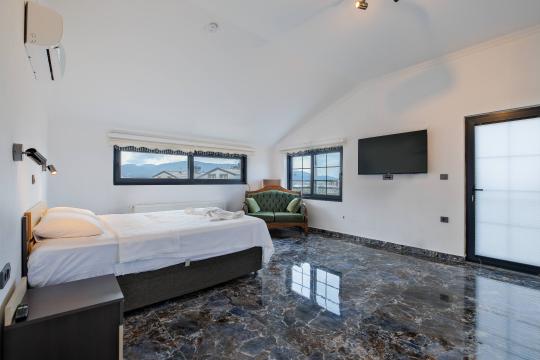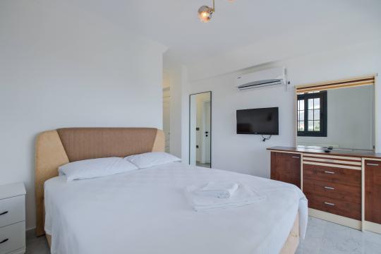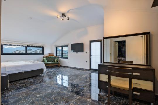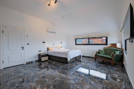 4. Yatak Odası : Oda içerisinde 1 adet çift kişilik yatak, komodin, kıyafet dolabı, TV, klima, özel banyo/WC bulunmaktadır.