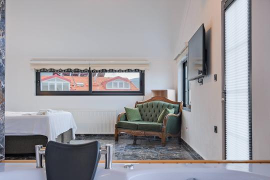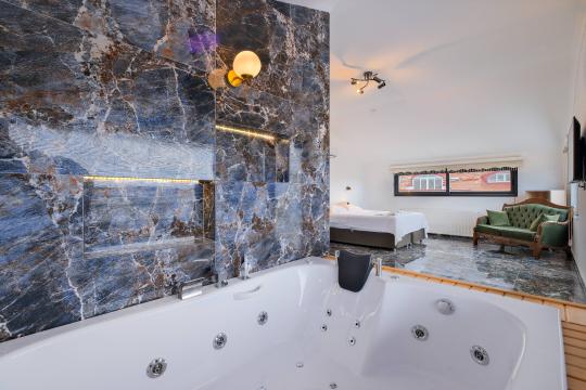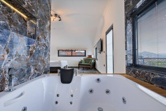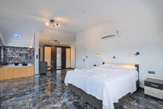 1. Yatak Odası : Oda içerisinde 1 adet çift kişilik yatak, komodin, giyinme odası, makyaj masası, klima, jakuzi, özel banyo/WC ve balkon bulunmaktadır.