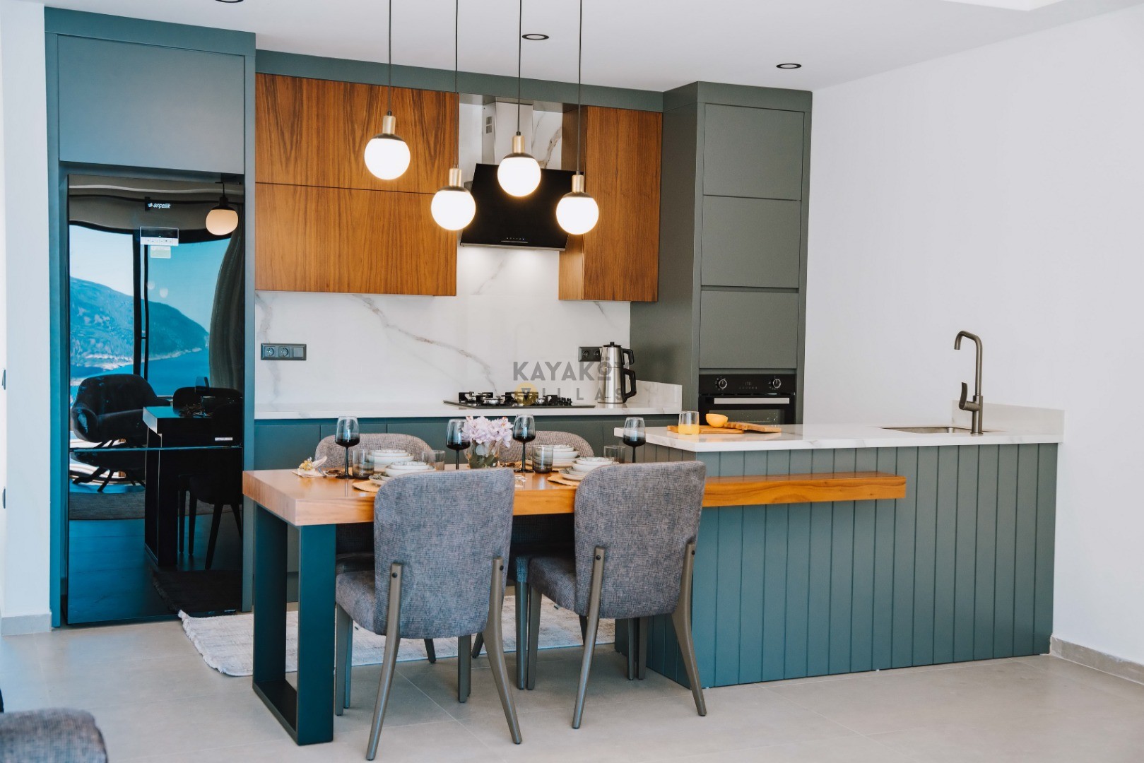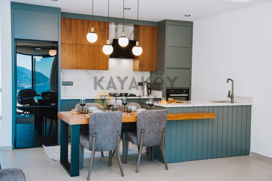 Villanın tam donanımlı Amerikan mutfağında buzdolabı, bulaşık makinesi, ocak, fırın ve mutfak gereçleri bulunur; tatilde evinizdeki gibi yemek hazırlama imkânı sağlar. Villa Seraph Duo, Kaş’ın sakin ve doğal ortamında hem huzurlu hem de keyif dolu bir tatil deneyimi sunar.