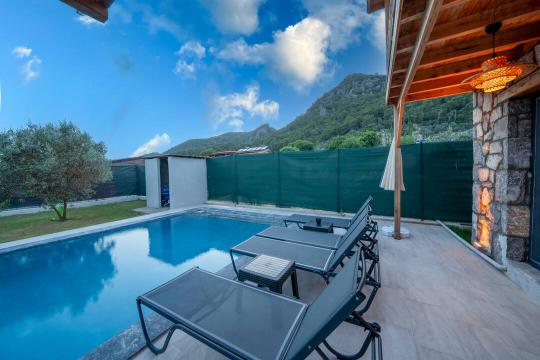 Muğla, Fethiye ilçesine bağlı Göcek İnlice Mevkiinde bulunan Villa Serenity, 2 yatak odalı 4 kişilik konaklama kapasitesine sahip olup 2 katlı özel havuzlu, jakuzili ve saunalı villalarımızdan biridir. Sakin ve huzurlu bir tatil geçirmek isteyen Muhafazakâr konuklarımız ve Balayı çiftlerimiz için Taş mimari ve ahşap işçiliği özenle işlenerek özel olarak tasarlanmış olup, konforunuz için her ayrıntı düşünülerek dizayn edilmiştir.