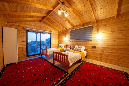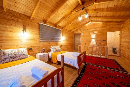 2. Yatak Odası : 2 adet tek kişilik yatak, makyaj masası, klima, elbise dolabı, komodin, Banyo&WC veSauna bulunmaktadır.