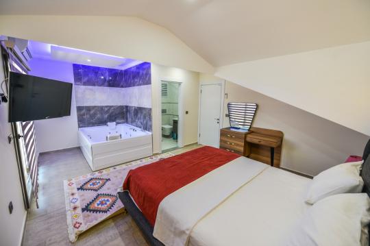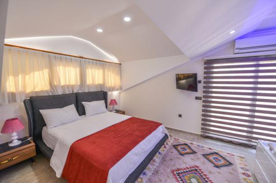 Modern ve konforlu bir iç dizayna sahip olan Villa Seyhan, 3 yatak odalı ve 6 kişi kapasitelidir. Çatı katında bulunan birinci yatak odası içerisinde bir çift kişilik yatak, WC-Duş, jakuzi, TV ve klima alanı yer alırken; ikinci yatak odasında bir çift kişilik yatak, WC-Duş ve klima bulunmaktadır. Üçüncü yatak odasında ise iki adet tek kişilik yatak, WC-Duş ve klima vardır. Ortak alan içerisinde şık bir şekilde döşenmiş mutfak-salon, WC-Duş, TV ve klima yer almaktadır.