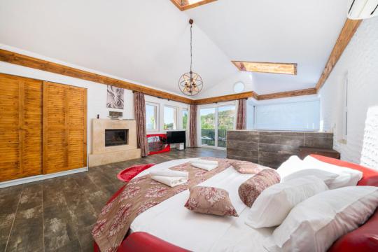 1.Yatak Odası: 1 adet büyük boy çift kişilik yatak, ısıtmalı iç mekan havuzu, gardrop, komodin, makyaj masası ve banyo-WC yer almaktadır.